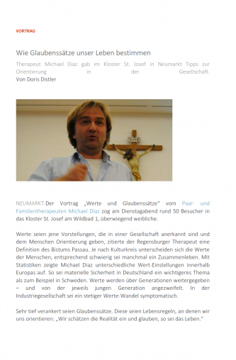 Vortrag "Werte und Glaubenssätze" im Kloster St.Josef Neumarkt/Oberpalz